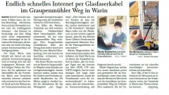 Warin 15.04.2016. Schnell noch die neuesten E-Mails lesen, die Online-Bestellung abschicken, Fotos mit den Verwandten teilen oder die Lieblingsserie streamen – das Internet ist aus dem Alltag nicht mehr wegzudenken. Desto schwieriger ist die Situation für diejenigen, die keinen oder nur einen sehr langsamen Internetanschluss zur Verfügung haben. Die Stadt Warin kämpft seit Jahren um eine schnelle Internetversorgung für seine Anwohner. Im Bereich Graupmühler Weg ist das Vergangenheit. Seit dieser Woche können die ersten Kunden mit Lichtgeschwindigkeit durch das Internet surfen. Kunden können über Ihren Anschluss endlos telefonieren und Fernsehen in bester HD Qualität erleben.